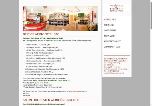 Elisabeth Hausgnost ist in einem Wein- und Obstbaubetrieb in Wagram/Traisen aufgewachsen und absolvierte die Höhere Bundeslehr- und Versuchsanstalt für Wein- und Obstbau in Klosterneuburg. Nach erfolgreichen Jahren im internationalen Weingeschäft hat sie 2007 beschlossen ihre große Leidenschaft „Wein & Genuss“ in einem netten Geschäft ihrer neuen Heimat Guntersdorf im Weinviertel zu vereinen. Nebenbei managt sie ihre Familie mit Tochter Katharina und Sohn Stefan. Ihr Mann Heinz unterstützt sie in allem tatkräftig. Da Elisabeth Wein zu ihrer Lebensaufgabe gemacht hat, ist es ihr sehr wichtig, alle Wünsche der Kunden zu erfüllen, sodass jeder den perfekten Wein für sich und seine Freunde findet.